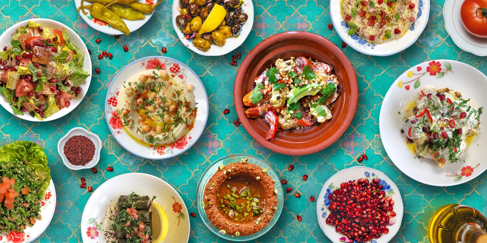 - Mezze: Antipasti assortiti come hummus, baba ganoush, falafel e warak enab (foglie di vite ripiene).
